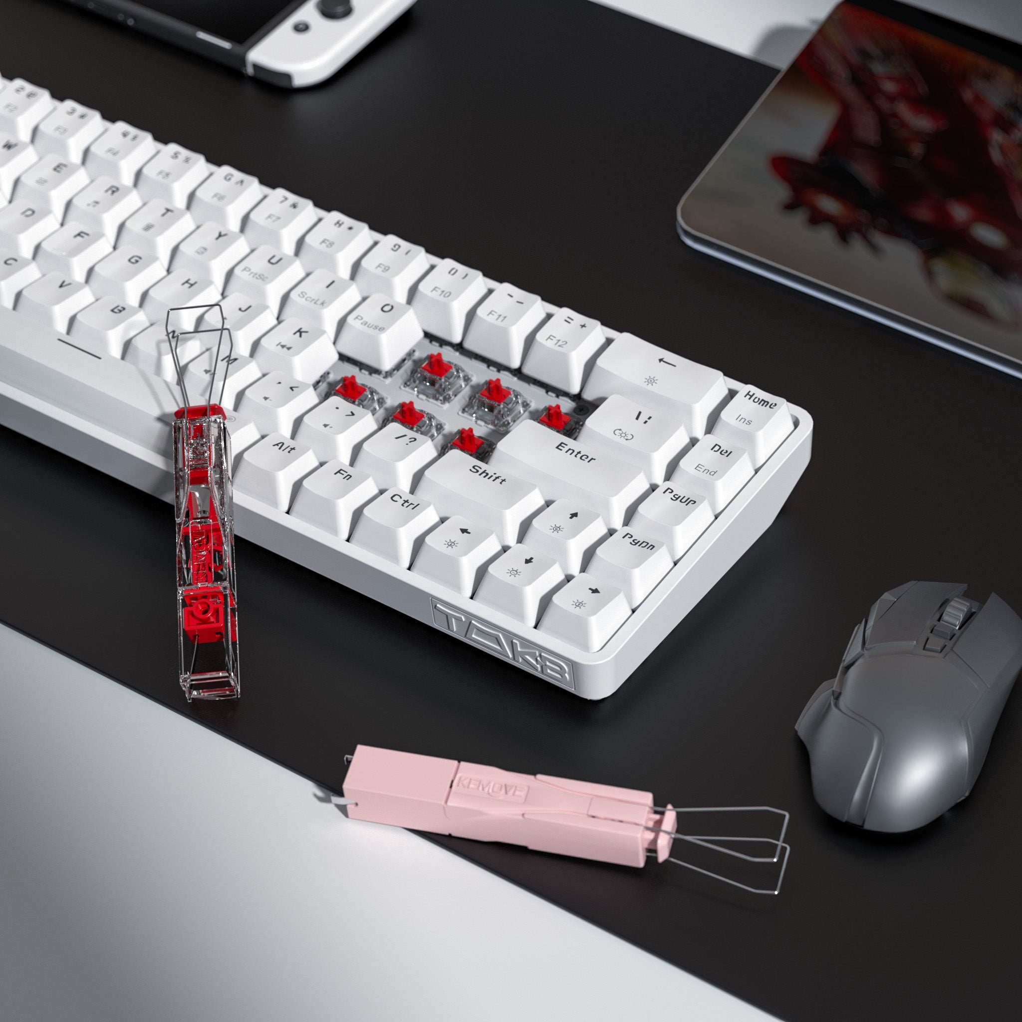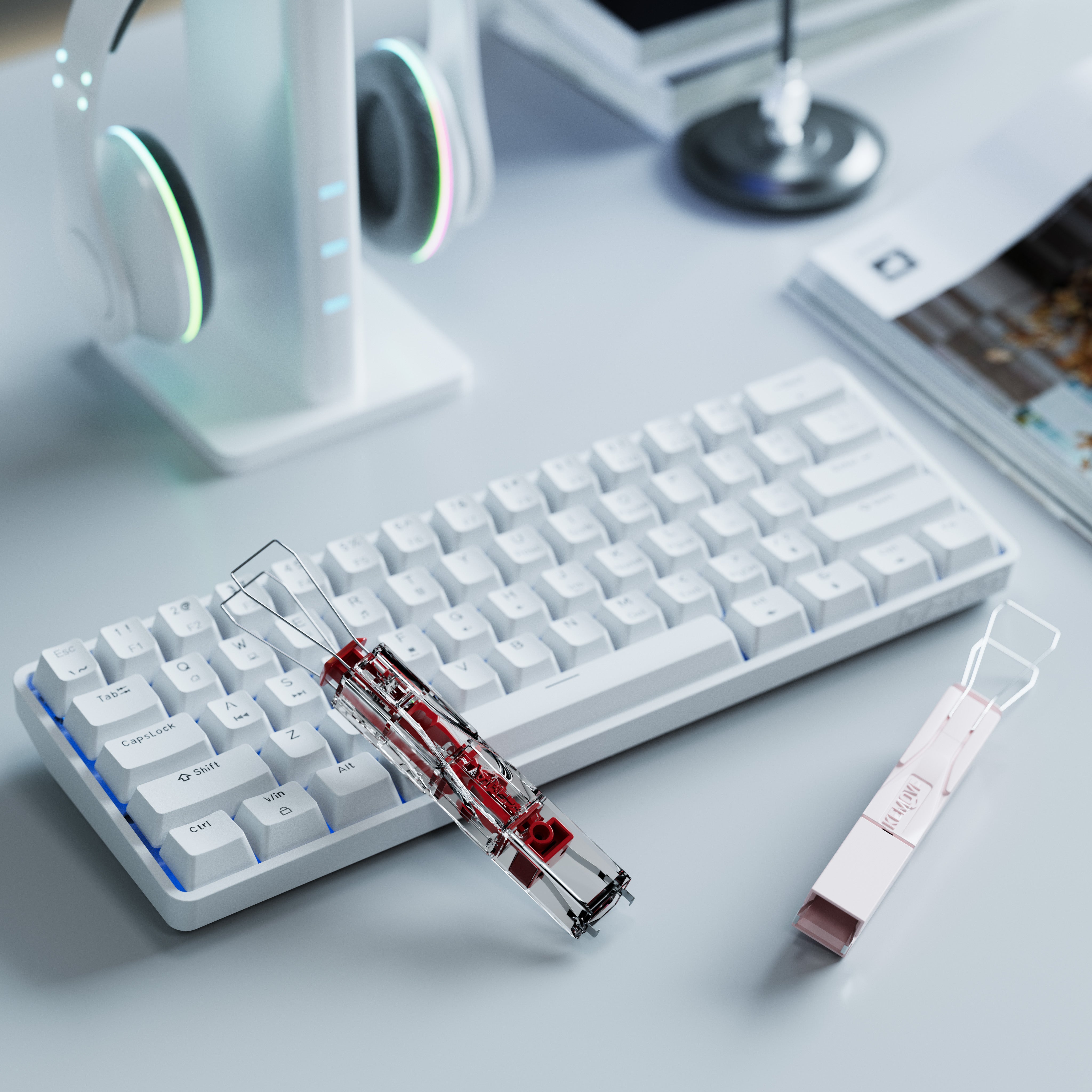 - Simplified Keycap Removal: The keycap puller fixture's force arm eliminates the constraints of elastic force, and the distance between force arms is equivalent to the gap between keyboard keycaps. This allows for easy insertion and hooking of the keycap puller, which can be effortlessly removed with a gentle pinch and pull.